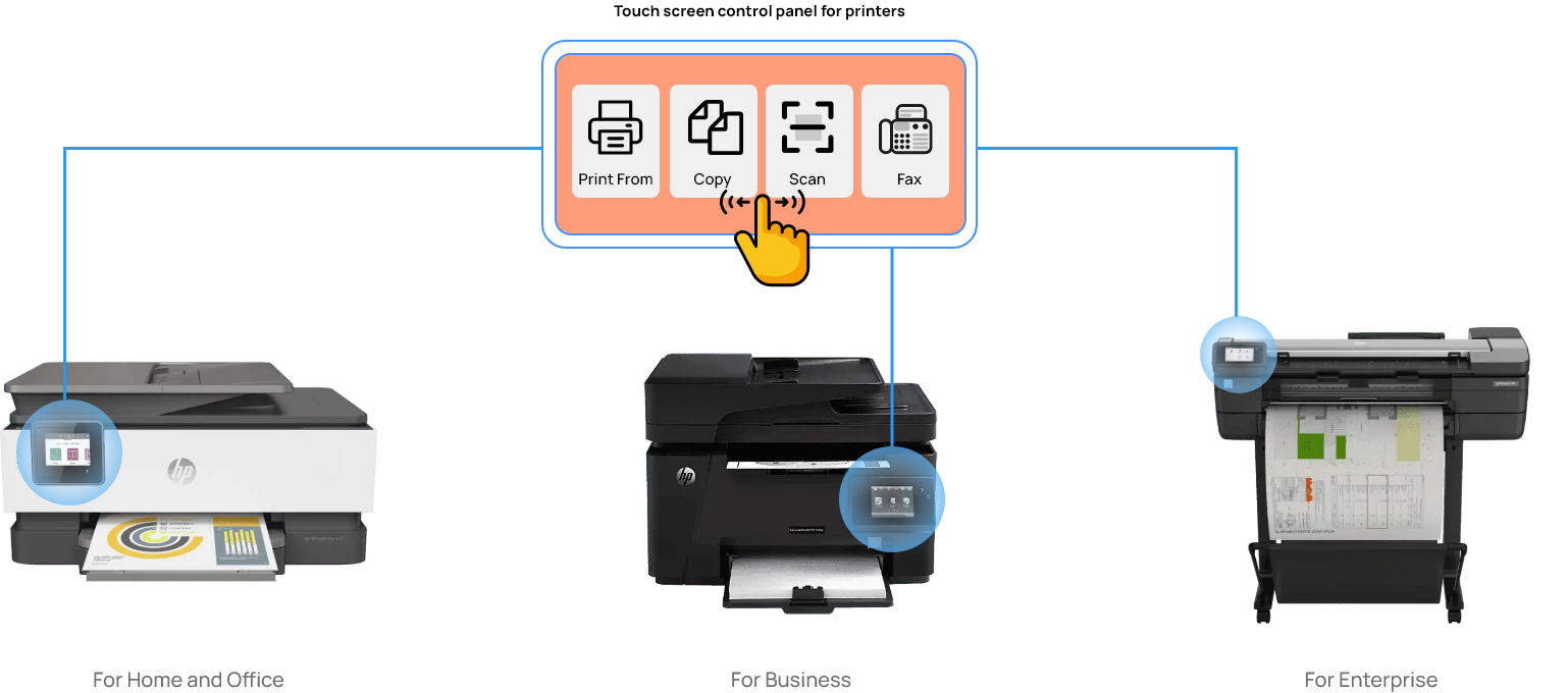 I led UX workflow design across HP’s printer portfolio, creating consistent, seamless touch experiences across small, mid, and enterprise devices.