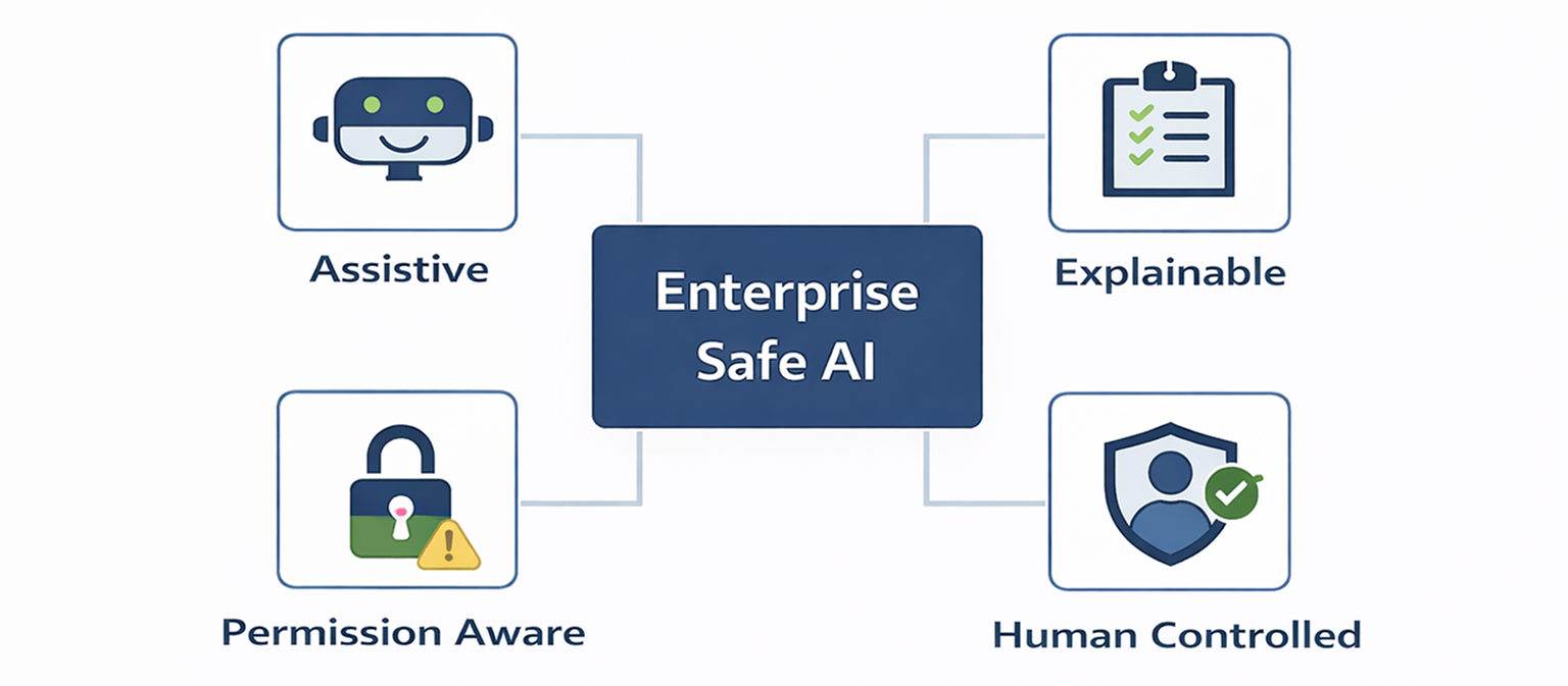 All enterprise data comes from secure system sources. AI explains — UI confirms.