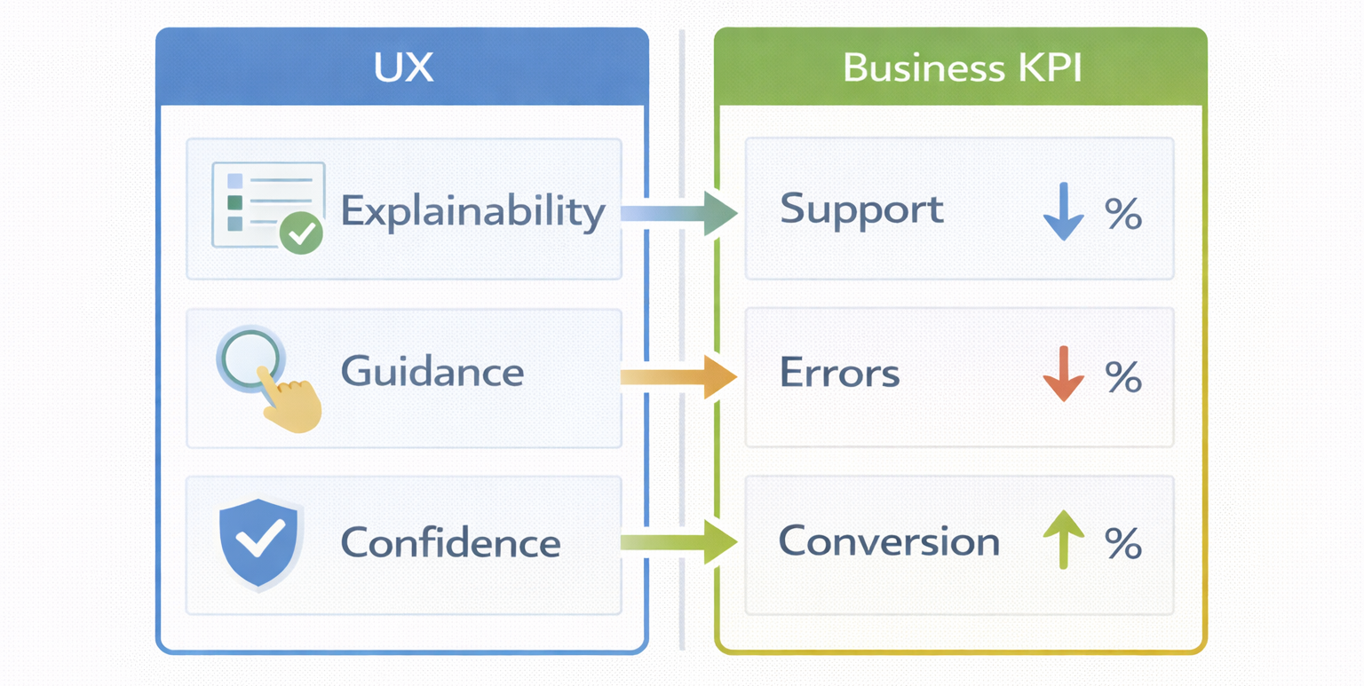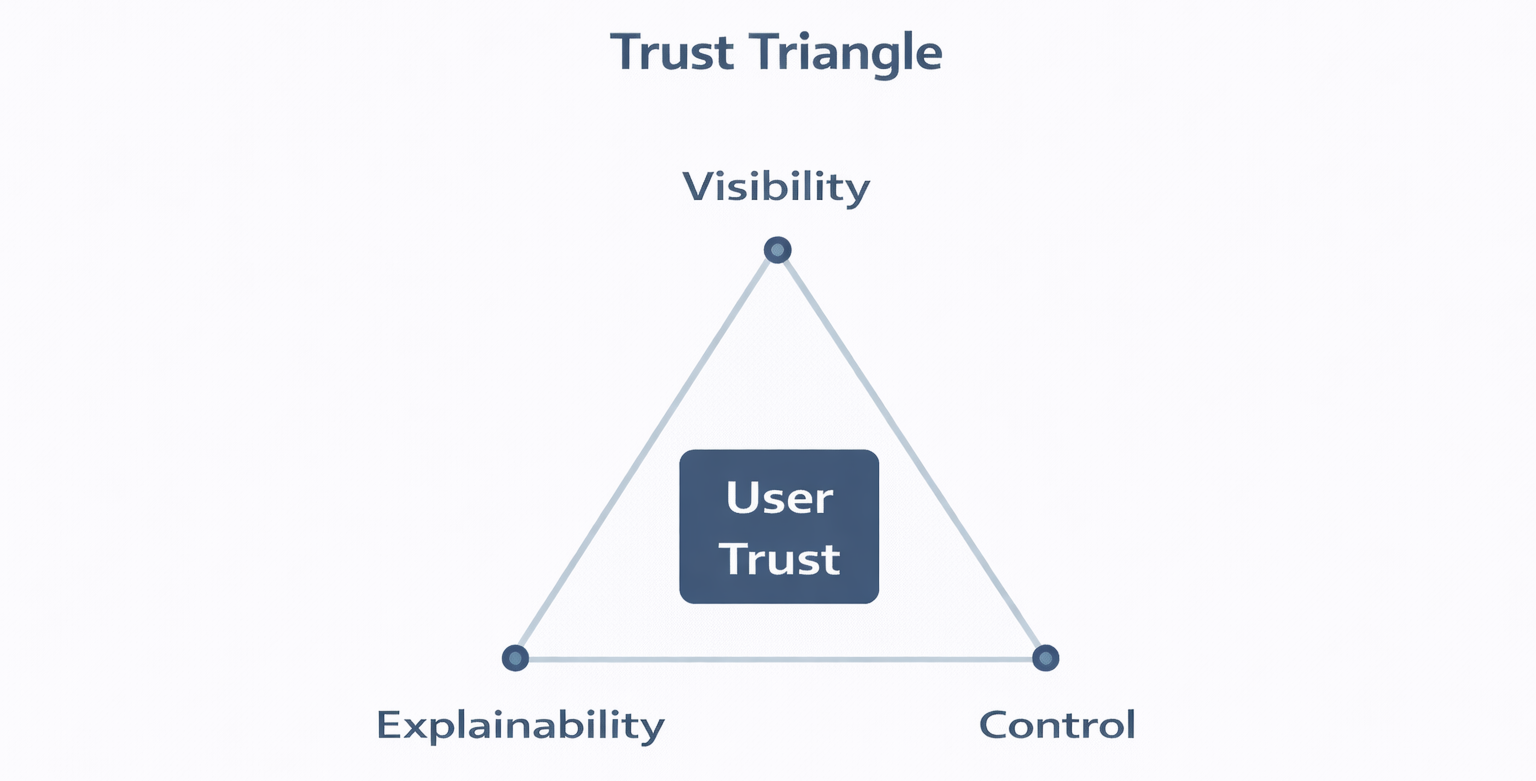 Information Scent - Show outcome risk before action, Trust by Design - Visibility, Explainability, Control